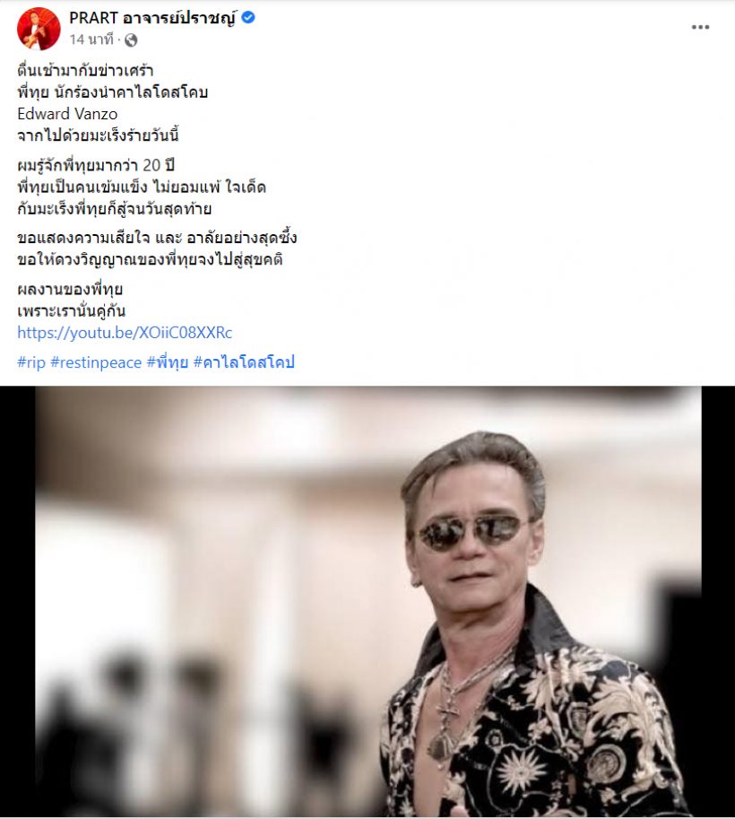 ขอแสดงความเสียใจ “ทุย เอ็ดเวิร์ด แวนโซ” เสียชีวิตแล้ว