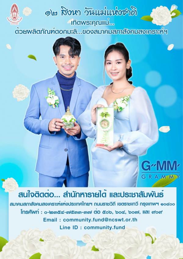 ศิลปินแกรมมี่ ชวนบอกรักแม่ พร้อมเชิญชวนอุดหนุนผลิตภัณฑ์ดอกมะลิวันแม่ สัญลักษณ์วันแม่แห่งชาติ