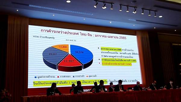 นายณรงค์ศักดิ์ กล่าวว่า เมื่อพิจารณาถึงความสัมพันธ์ทางเศรษฐกิจระหว่างจีนและไทย จากการสำรวจพบว่าร้อยละ 29 คาดว่าเศรษฐกิจ การค้า การลงทุนโดยรวมของจีนในไตรมาสที่ 3 จะดีขึ้น เมื่อเทียบกับไตรมาสที่ 2 ในขณะที่ร้อยละ 43 คาดว่าเศรษฐกิจจีนจะทรงๆ ส่วนร้อยละ 22 มีความเห็นว่าเศรษฐกิจจีนน่าจะเติบโตช้าลง ซึ่งผลการประเมินดังกล่าวได้สะท้อนถึงการคาดคะเนการส่งออกของไทยไปยังประเทศจีนในไตรมาสที่ 3 เมื่อเทียบกับไตรมาสปัจจุบันกล่าวคือ ร้อยละ 54 คาดว่าการส่งออกของไทยไปยังจีนจะเพิ่มขึ้น และ ร้อยละ 27 ยังไม่เปลี่ยนแปลงไปจากปัจจุบัน การคาดคะเนการนำเข้านั้น ร้อยละ 58 คาดว่าการนำเข้าจากจีนจะเพิ่มสูงขึ้น และร้อยละ 23 การนำเข้าจะทรงตัว ส่วนผลของการสอบถามความคิดเห็น ด้านการลงทุนของจีนในไทย พบว่า ร้อยละ 56 ของผู้ให้ข้อมูลคิดว่าการลงทุนจากจีนในไทยในไตรมาสที่สามเมื่อเปรียบเทียบกับไตรมาสที่สองจะเพิ่มขึ้นในขณะที่ร้อยละ 28 ของผู้ให้ข้อมูลคาดว่าการลงทุนจะไม่เปลี่ยนแปลงไปจากปัจจุบัน กล่าวโดยสรุปได้ว่าเศรษฐกิจจีนมีแนวโน้มที่น่าจะปรับตัวดีขึ้นบ้างในอีกสามเดือนหน้า และน่าจะมีผลที่ดีกับประเทศไทยในเรื่องการค้า และการลงทุนระหว่างประเทศ