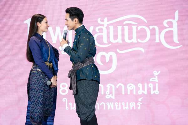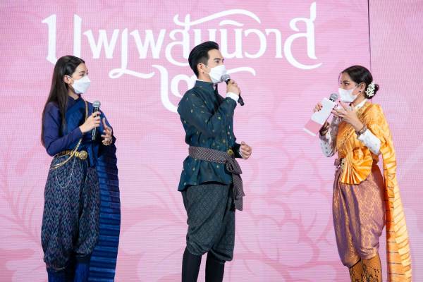จากนั้นถึงเวลาที่เหล่าออเจ้า ต่างพากันกรี๊ดสุดเสียง เมื่อ คุณพี่โป๊ป และ แม่หญิงเบลล่า เปิดตัวเดินควงคู่กันผ่านบันไดเลื่อน เดินเข้าสู่บริเวณงาน ด้วยคอสตูมชุดไทยจัดเต็มและอินเนอร์สุดต๊าซ เหมือนเดินทะลุออกมาจากในหนัง ทำเอาแฟน ๆ ที่รวมตัวชูป้ายไฟต้อนรับทั้งคู่อย่างเนืองแน่น ถึงกับปลื้มใจไปตาม ๆ กัน