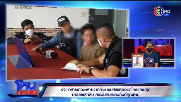 จุฑารัตน์ : เหมือนเดินอยู่หน้าโรงนอน วันนั้นเขาเข้าเวร ที่ชัดเจนมีแค่นี้ นอกนั้นค่ายไม่มีให้ แต่ส่วนมากถ้าเขาหนีจริง เขาต้องมาหาหนูที่บ้าน เพราะเขาติดหนูมาก เขาต้องบอกหนู แต่นี่หายไปเลยค่ะ