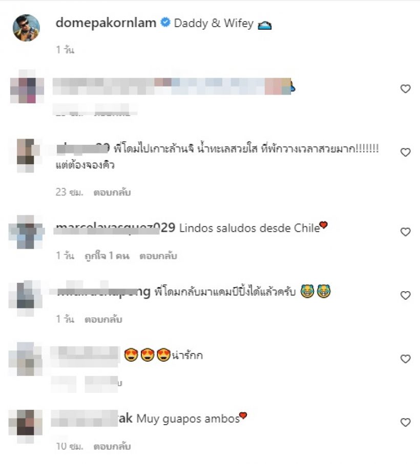ล่าสุด หนุ่มโดม ได้หย่อนภาพคู่แนบชิดภรรยาคนสวย พร้อมแคปชั่นชวนคิดว่า ...Daddy & Wifey ... หลายคนอดสงสัยไม่ได้ว่าหรือจะมีข่าวดีหรือเปล่า?