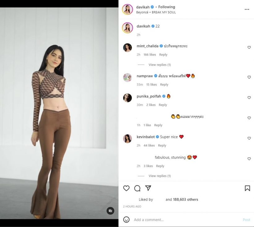 ล่าสุด เจ้าตัวก็ได้ลงคลิปวิดีโอสั้น ๆ ในอินสตาแกรม @davikah คว้าสายวัดมาวัดรอบเอวให้ดูกันจะจะ ปรากฏว่า รอบเอวสาวใหม่ มีขนาดเพียง 22 นิ้วเท่านั้น