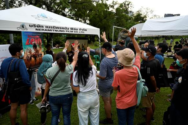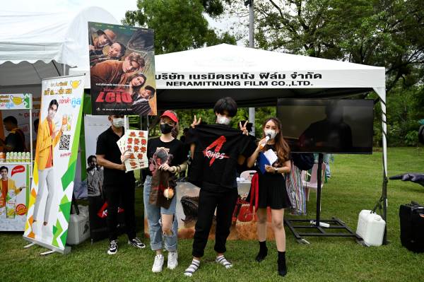 บรรยากาศภายในงาน ท่ามกลางสายฝน แต่ก็ยังได้รับการตอบรับที่ดีจากประชาชนที่มาจับจองพื้นที่ ณ สวนรถไฟ เขตจตุจักร เมื่อวันพฤหัสบดีที่ 14 กรกฎาคม ที่ผ่านมา เนรมิตรหนัง ฟิล์ม เปิดตัว มาสคอตแย้ สร้างความตื่นตาตื่นใจแก่ผู้ชม พร้อมจัดกิจกรรมร่วมสนุกตอบคำถามลุ้นรับเสื้อที่ระลึกจากภาพยนตร์ และกระเป๋าผ้าแย้ โดยได้รับความสนใจเป็นจำนวนมาก อีกทั้งยังได้นำภาพยนตร์ทำรายได้สูงสุดในปี 2564 อย่าง 4Kings รับชมฟรี ภายใต้มาตรการป้องกันโควิด -19 อย่างเข้มงวด