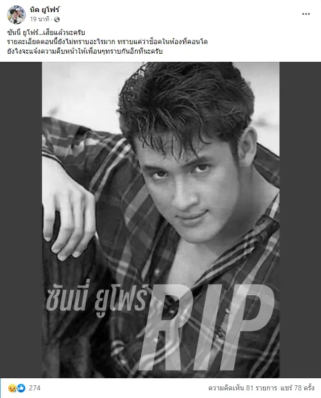 ขอแสดงความเสียใจ “ซันนี่ ยูโฟร์” เสียชีวิตแล้ว