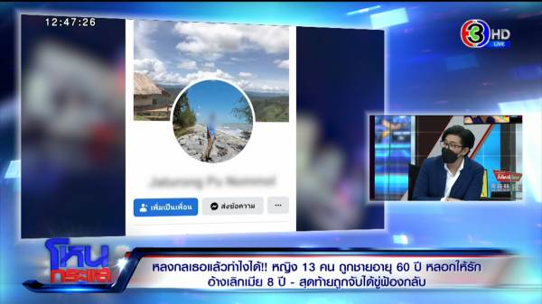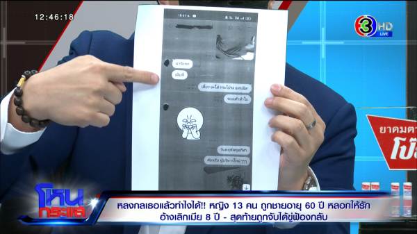 ผู้เสียหาย 3 ใน 13 ราย ช็อกตกเป็นน้อยไม่รู้ตัว ถูกชายอายุ 60 ปีหลอกให้รัก อ้างเลิกเมีย 8 ปี