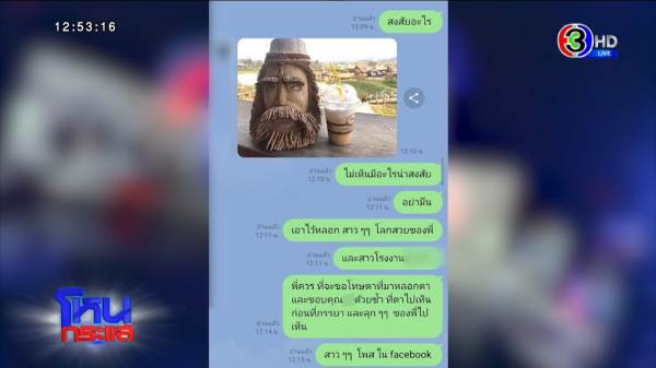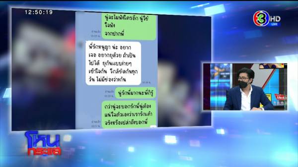 คุณถามว่าทำไมใจร้าย เลวมาก ๆ คุณบอกว่าร้องไห้เหมือนฟ้าผ่า เขาบอกว่ากำลังหาข้อมูลอยู่ เขาถูกแบล็กเมล์ เขาไลน์มาหาคุณล่าสุดว่ายังไง?
