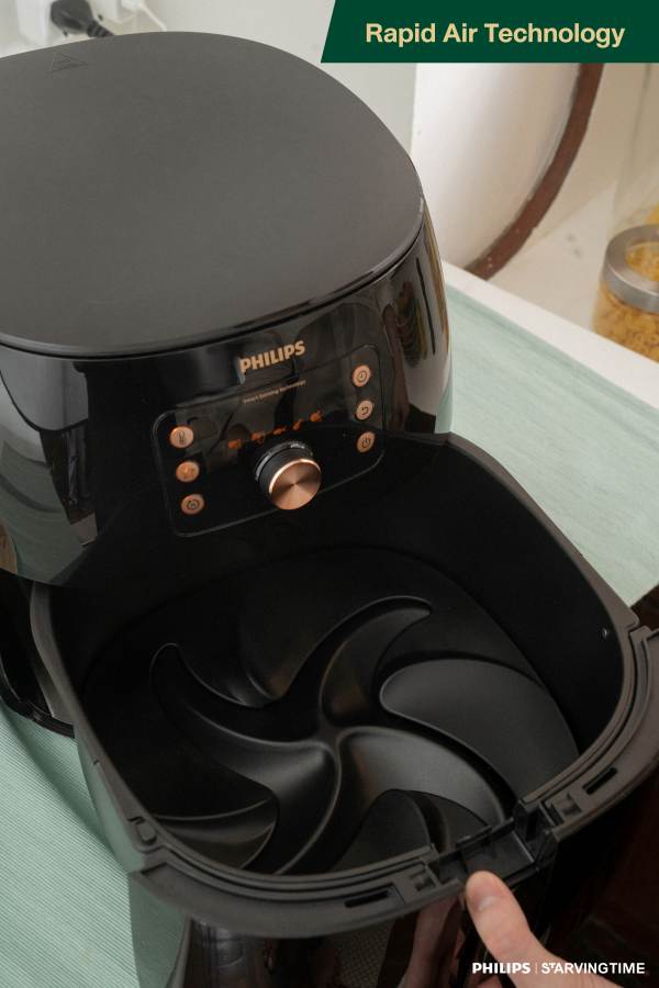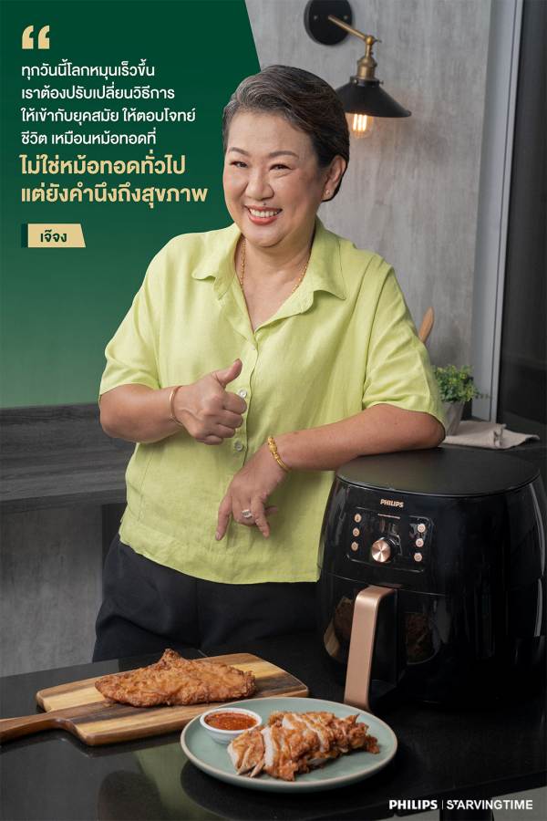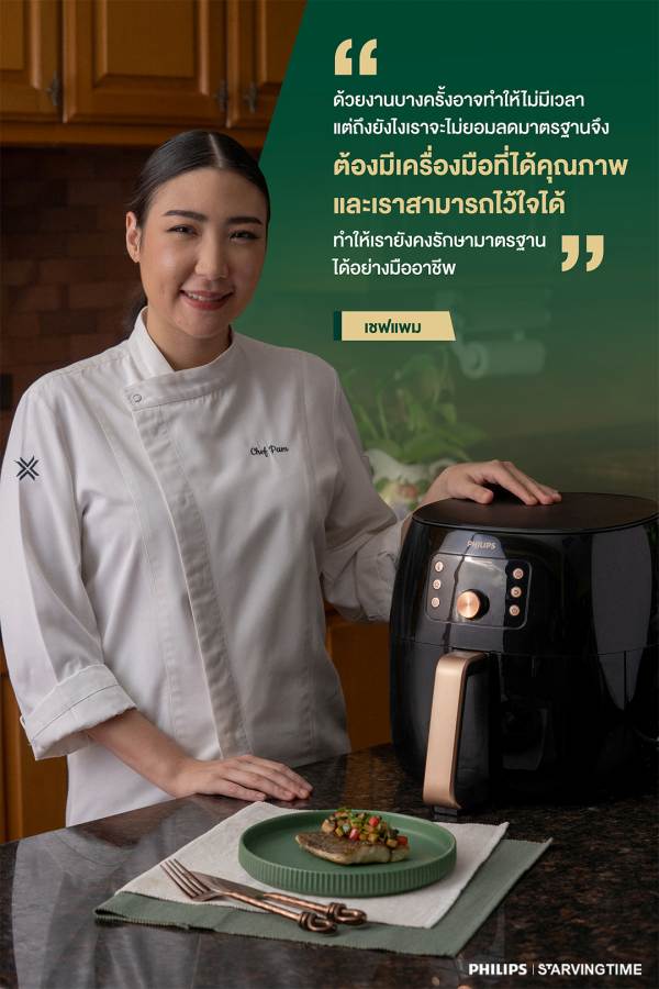 “แต่ด้วยคิวงานในบางครั้ง อาจจะไม่มีเวลาให้เราได้สร้างสรรค์ในแนวทางของเรา แต่ถึงยังไงก็ตามเราก็จะไม่ยอมลดมาตรฐานเช่นกัน จึงจำเป็นต้องมีเครื่องมือที่ได้คุณภาพจริง ๆ และเราสามารถไว้ใจได้ อย่างเช่น “PHILIPS Smart Airfryer” หม้อทอดที่มี Rapid Air Technology ไหลเวียนความร้อนได้อย่างทั่วถึง ร้อนไว ร้อนสม่ำเสมอ ได้ Texture ของอาหารหลายมิติ ให้อาหารกรอบนอกนุ่มในอย่างใจต้องการ ทำให้เรายังคงรักษามาตรฐานได้อย่างมืออาชีพจริง ๆ ”