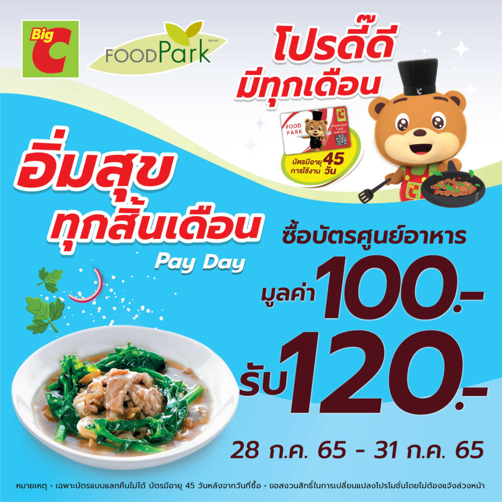 พลาดไม่ได้!! ศูนย์อาหารบิ๊กซี โปรดี ๆ มีทุกวัน เพียงซื้อบัตรศูนย์อาหารแบบแลกคืนไม่ได้ มูลค่า 150 บาท รับฟรีชามเอนกประสงค์ 1 ใบ และ อิ่มสุขทุกสิ้นเดือน ซื้อบัตรศูนย์อาหารแบบแลกคืนไม่ได้ มูลค่า 100 บาทรับเพิ่มเป็น 120 บาท ทันที ตั้งแต่วันที่ 28 ก.ค. 65 – 31 ก.ค. 65 เท่านั้น