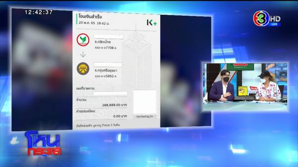 หนิง : ก็ถามว่าถามจริง ๆ เงินไปไหน เขาบอกเอาไปทำพิธี อ้างติดวันพระ อะไรก็แล้วแต่ โอนเงินไม่ได้ เข้าไปเอาไม่ได้ เราก็รอๆๆ จนเลื่อนไปอีก ตอนนี้ได้คืนทั้งหมด 188,888 หลังจากที่รอบแรกวันที่ 15 ที่ผ่านมาโอนเข้ามา 7 หมื่น วันที่ 16 ที่ผ่านมาโอนเข้ามา 3 หมื่น แล้วบอกว่าขอจบวันที่ 22 อีก 1 แสนจะเคลียร์ให้วันที่ 22 ซึ่งก็คือวันนี้ ยังไม่ได้เลยค่ะ