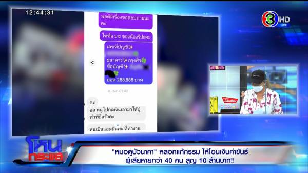 เจี๊ยบ : ตอนแรกเป็นคนดูดวง แล้วเขาเอาบัญชีเราให้คนอื่นโอนเงินมาค่ะ