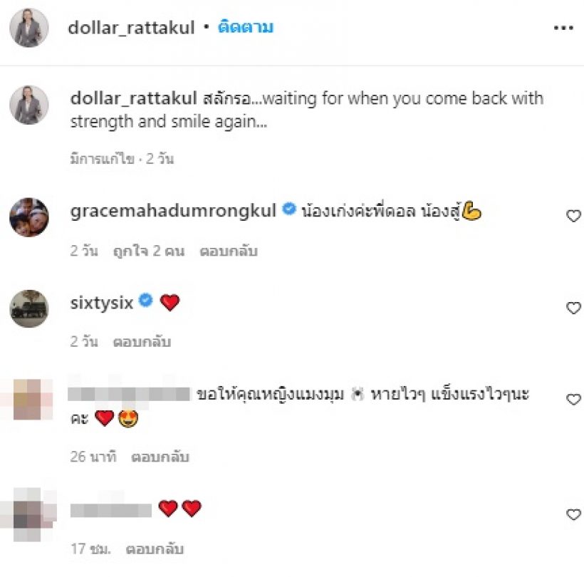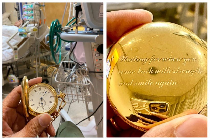 ล่าสุด สามีคุณหญิงแมงมุม โพสต์ภาพนาฬิกาเรือนหรูที่สลักด้านหลังเป็นข้อความให้กำลังใจ พร้อมแคปชั่นบอกว่า “สลักรอ…waiting for when you come back with strength and smile again…” (รอเมื่อคุณกลับมาพร้อมความเข้มแข็งและรอยยิ้มอีกครั้ง)