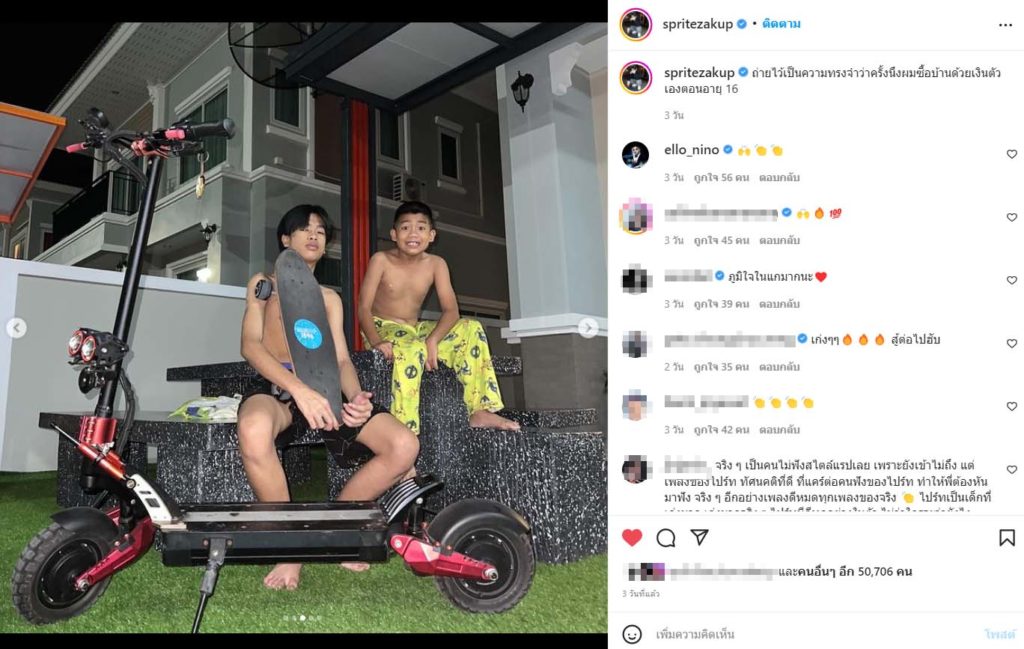 ล่าสุด น้องสไปร์ท ได้โพสต์คู่บ้านหลังใหม่ พร้อมข้อความสุดภูมิใจว่า “ถ่ายไว้เป็นความทรงจำว่าครั้งนึงผมซื้อบ้านด้วยเงินตัวเองตอนอายุ 16”