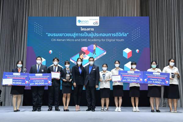 กรุงเทพฯ – 25 กรกฎาคม 2565:มูลนิธิคีนันแห่งเอเซีย ร่วมกับ มูลนิธิซิตี้ จัดงานประกาศผลสำเร็จโครงการอบรมเยาวชนสู่การเป็นผู้ประกอบการดิจิทัล Citi-Kenan Micro and SME Academy for Digital Youth จากการเปิดเวทีการแข่งขันนำเสนอแผนธุรกิจเพื่อเฟ้นหาเยาวชนคนรุ่นใหม่ทุกสายอาชีพและทุกกลุ่มที่มีความสนใจในการเป็นผู้ประกอบการ ซึ่งสามารถประยุกต์ความรู้สายอาชีวศึกษาในการเป็นผู้ประกอบการได้อย่างชัดเจน และตอบโจทย์ตลาดออนไลน์ เปิดโอกาสในการพัฒนาตนเอง ทั้งยังเสริมสร้างทักษะที่จำเป็นเพื่อเข้าถึงทักษะอาชีพ ตลาดแรงงาน และแหล่งเงินทุน พร้อมชิงเงินรางวัลตั้งต้นธุรกิจ หรือพัฒนาธุรกิจออนไลน์ โดยภายในงานได้รับเกียรติจาก นายมณฑล ภาคสุวรรณ์ รองเลขาธิการคณะกรรมการการอาชีวศึกษาเป็นประธานในพิธี