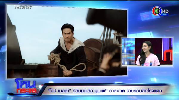 รายการโหนกระแสวันที่ 26 ก.ค. 65 ดำเนินรายการโดย “หนุ่ม กรรชัย กำเนิดพลอย” ผลิตในนามบริษัท ดีคืนดีวัน จำกัด ออกอากาศทุกวันจันทร์-ศุกร์ เวลา 12.35 น. ทางช่อง 3 กดเลข 33 สัมภาษณ์ “โป๊ป ธนวรรธน์ วรรธนะภูติ” และ “เบลล่า ราณี แคมเปน” กลับมาสร้างปรากฏการณ์โรงแตก หลังจากที่ภาพยนตร์ “บุพเพสันนิวาส 2” เตรียมเข้าฉายในวันที่ 28 ก.ค. นี้