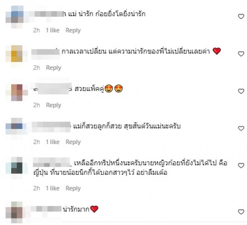ล่าสุด “ก้อย” โพสต์ภาพในอดีตคู่กับคุณแม่ลงอินสตราแกรม @goyyog แฟนคลับก็แห่ชมสนั่นไอจี ทั้งบอกว่า “คุณแม่สวยมาก พี่ก้อยน่ารักแต่เด็กเลย , คุณแม่สวยมากก , คุณแม่สวยไม่เปลี่ยนเลย พี่ก้อยน่ารักแต่เด็กเลย , ต่อให้โลกจะหมุนสักเท่าไร เธอยังคงสดใสอ่อนหวานเหมือนเคย เป็นต้น”