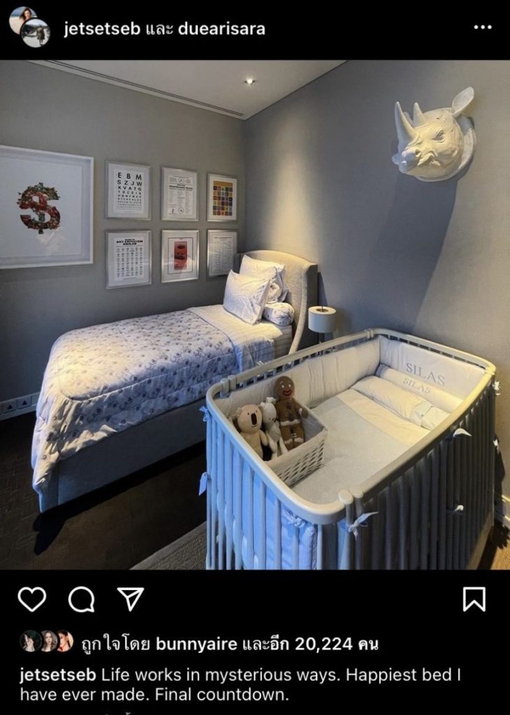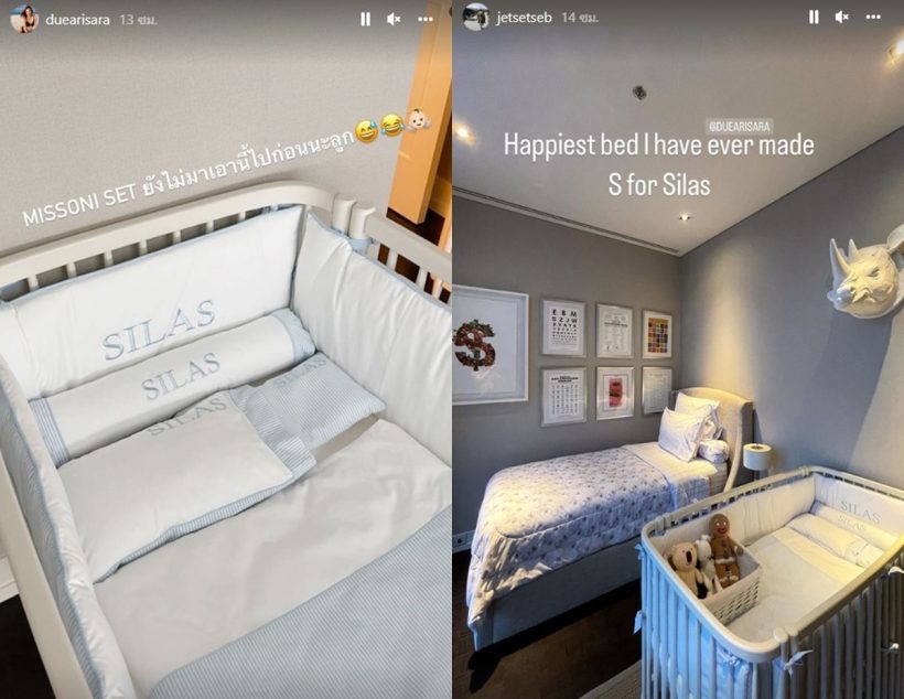 ล่าสุด “สาวดิว และเซบาสเตียน” เริ่มจัดเตรียมเตียง เตรียมห้อง ข้าวของเครื่องใช้สำหรับเบบี๋ไว้รอต้อนรูปลูกชายอย่างสวยหรู มีการปักชื่อ ‘SILAS’ กำกับไว้ด้วย พร้อมแคปชั่นว่า “Life works in mysterious ways. Happiest bed I have ever made. Final countdown“