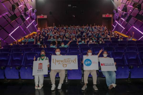 จากนั้น ทีมผู้บริหาร ได้เดินทางไปยังโรงภาพยนตร์ไอคอน ซีเนคอนิค ศูนย์การค้าไอคอน สยาม และโรงภาพยนตร์ เอส เอฟ เวิลด์ ซีเนม่า ศูนย์การค้าเซ็นทรัลเวิลด์ เพื่อเปิดฉายภาพยนตร์รอบพิเศษสำหรับผู้สูงอายุ, ผู้พิการ, ผู้ด้อยโอกาส และเยาวชน เพื่อชมภาพยนตร์ “บุพเพสันนิวาส ๒” ฟรี จำนวน 1,000 ที่นั่ง เรียกว่าอิ่มทั้งใจได้ทั้งบุญ