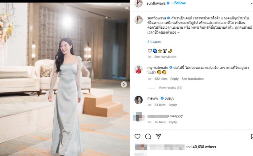 ล่าสุด หนุ่มเนท ได้คอมเมนต์ใต้โพสต์ของ สาวเอวา หลัง เอวา โพสต์ภาพตัวเองลงอินสตราแกรม พร้อมแคปชั่นว่า “ถ้าเราเป็นคนดี เวลาจะนําพาสิ่งดีๆ และคนดี ๆ เข้ามาในชีวิตเราเอง เหมือนเป็นของขวัญให้ เพียงแค่รอช่วงเวลาที่ใช่ เหมือน ดอกไม้ที่รอเวลาเบ่งบาน หรือ พระจันทร์ที่ขึ้นในยามค่ำคืน ทุกคนล้วนมีเวลาชีวิตของตัวเอง ~