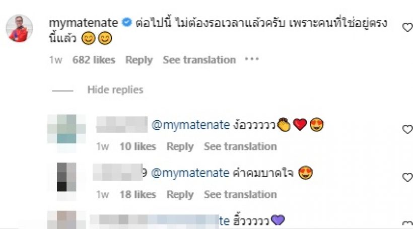 และ หนุ่มเนท ได้คอมเมนต์ว่า “ต่อไปนี้ ไม่ต้องรอเวลาแล้วครับ เพราะคนที่ใช่อยู่ตรงนี้แล้ว 😊😊”