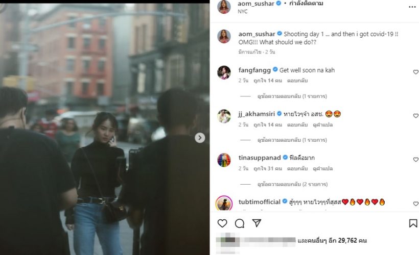 ล่าสุด สาวออม ไปพักผ่อนหย่อนและถ่ายงานที่ประเทศนิวยอร์ก แต่ สาวออม แจ้งข่าวว่าติดโควิด-19 ขณะถ่ายงานที่นิวยอร์ก