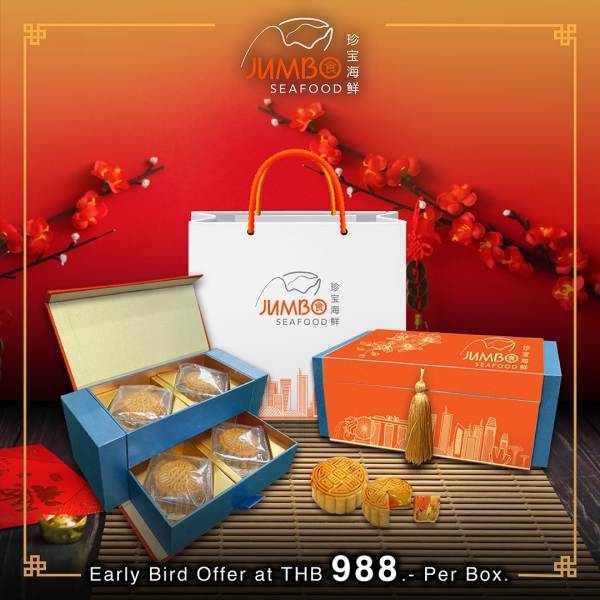 ร้านจัมโบ้ซีฟู้ด ได้จัดขนมไหว้พระจันทร์สูตรต้นตำรับทั้ง 4 รสชาติ 1. ทุเรียนหมอนทองไข่แดง 2. โหงวยิ้งไข่แดง 3. เกาลัดแมคคาดาเมียร์ 4. ส้มยูซุแมคคาดาเมียร์ พร้อมเปิดตัวกล่องขนมสุดพรีเมี่ยมและทรงคุณค่าแก่การมอบให้คนพิเศษ