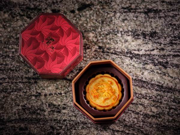 ขนมไหว้พระจันทร์จากโรงแรมเพนนินซูลา กรุงเทพฯ ขนมไหว้พระจันทร์ไส้คัสตาร์ดไข่แดงออร์แกนิคในตำนานจากครัวเหม่ยเจียงของโรงแรม ซึ่งแต่ละชิ้นรังสรรค์ด้วยวัตถุดิบออร์แกนิคโฮมเมดสดใหม่ทุกวัน บรรจุมาในกล่องแปดชิ้นทรงแปดเหลี่ยมตกแต่งด้วยลายดอกบัวที่เป็นเอกลักษณ์,