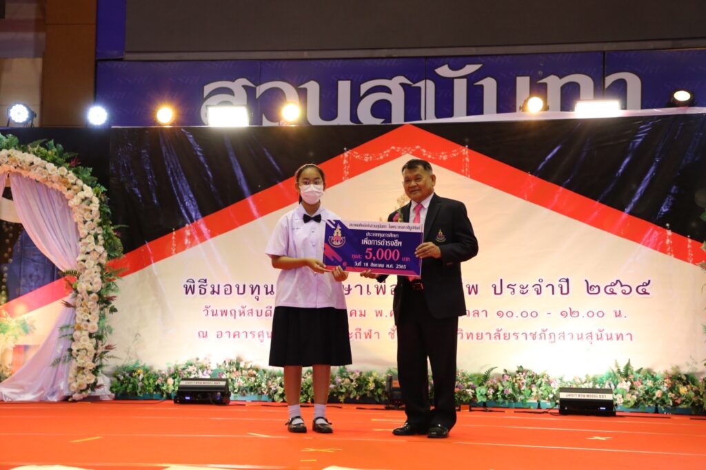“ทุนการศึกษา มีส่วนสำคัญอย่างมากที่ช่วยให้แก่นักเรียน นักศึกษา หลายคน ได้มีโอกาสศึกษาต่อในมหาวิทยาลัยราชภัฏสวนสุนันทา ในปีการศึกษา 2565 ซึ่งมีหน่วยงานภาคเอกชน บริษัท ห้างร้าน ตลอดจนบุคคลผู้มีจิตเมตตายื่นความประสงค์ขอมอบทุน รวมถึงสมาคมฯ ยังได้สมทบทุนการศึกษาในครั้งนี้ให้บรรลุและเป็นไปตามวัตถุประสงค์อีกด้วย” นายวัชระ กล่าวในที่สุด