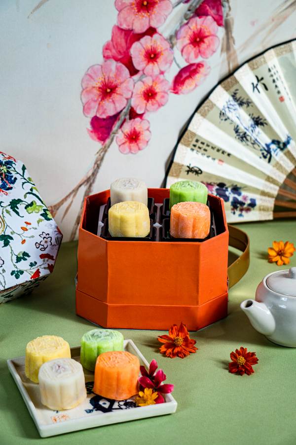 - ขนมไหว้พระจันทร์ไส้คัสตาร์ดไข่เค็ม(สีส้ม) : สีมงคลที่แสดงถึงความเจริญรุ่งเรืองของหน้าที่การงาน และโชคลาภ มาในรูปแบบของขนมไหว้พระจันทร์แป้งสดไส้คัสตาร์ดไข่เค็ม ซึ่งตัวไข่แดงเค็มเป็นไข่เค็มออร์แกนิคที่ทางโรงแรมคัดมาพิเศษเพื่อคุณภาพและรสชาติที่ดีที่สุด