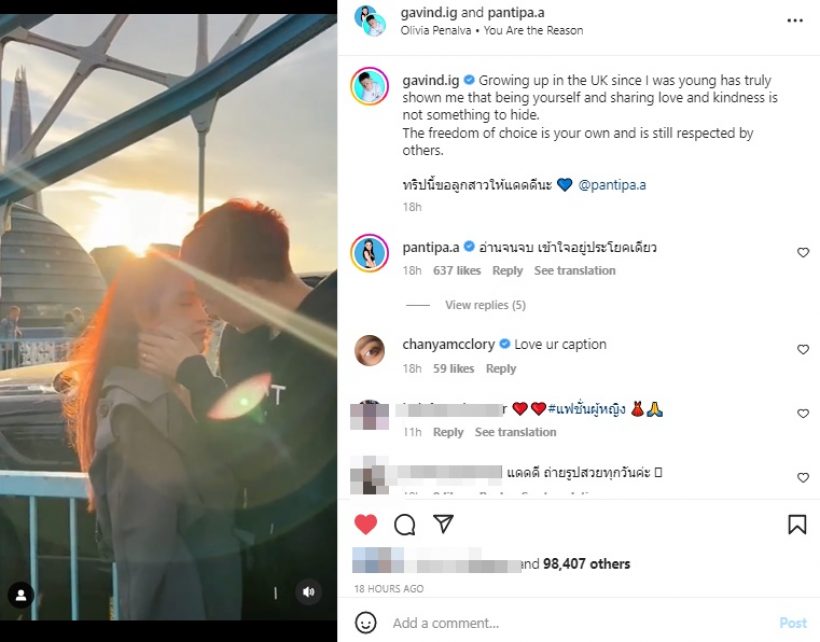 ล่าสุด ทั้งคู่ไปเที่ยวที่ลอนดอน โดย กวินท์ โพสต์คลิปหวานคู่ภรรยา พร้อมแคปชั่นระบุว่า “Growing up in the UK since I was young has truly shown me that being yourself and sharing love and kindness is not something to hide. The freedom of choice is your own and is still respected by others. ทริปนี้ขอลูกสาวให้แดดดีนะ @pantipa.a” ปุ้มปุ้ย ตอบกลับว่า ‘อ่านจนจบ เข้าใจอยู่ประโยคเดียว’ เอาล่ะงานนี้มีลุ้นว่าจะมีอ้อนสำเร็จมั้ยน้าาา