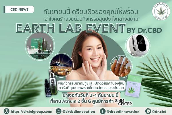 Dr.CBD ส่งกิจกรรมสุดฟินเอาใจคนรักสวยตั้งบูธกิจกรรมปักหลักกลางสยามกับ “EARTH LAB EVENT BY Dr.CBD” เตรียมผิวของคุณให้พร้อมแล้วมาร่วมสนุกกับกิจกรรม งานนี้ Dr.CBD ยกทัพสินค้าผลิตภัณฑ์สารสกัดจากกัญชา กัญชง และกระท่อม มาให้สัมผัสและทดลอง พร้อมกิจกรรมไฮไลท์กับการเปิดตัวสินค้าน้องใหม่การันตีคุณภาพสร้างโดยนวัตกรรมระดับโลก โดยภายในงานนอกจากจะได้พบกับสินค้าคุณภาพเกรดพรีเมียมที่พร้อมด้วยคุณสมบัติในการดูแลผิวได้อย่างตรงจุด ยังมีโซน Skin Analyzer ผู้เข้าร่วมงานสามารถวิเคราะห์ผิวหน้าด้วยเครื่อง Smart Mirror Pro ด้วยการถ่ายภาพแล้วนำมาวิเคราะห์ผล ซึ่งทำให้สามารถทราบถึงปัญหาต่างๆ ที่เกิดขึ้นบนใบหน้าของคุณ