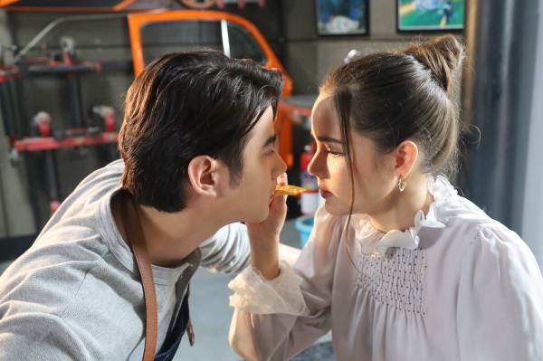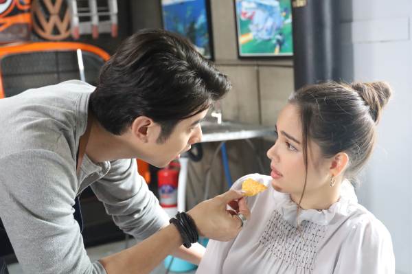 และวันนี้ก็มีเบื้องหลังสนุก ๆ น่ารักมาให้ชมกันอีก โดยเป็นตอนที่ก้าวกล้า(มาริโอ้) นัดสายขิม(ญาญ่า) ไปคุยกันอีก บอกอยากให้ช่วยเหลือ ให้คืนดี และแต่งงานกับแคลร์(รัญชน์รวี เอื้อกูลวราวัตร) ทำให้สายขิมอึ้ง ๆ แต่ก็บอกว่าจะช่วยก้าวกล้าเต็มที่ คุยกันไปมา ขณะที่สายขิมกินขนมทาร์โก้ ปรากฏว่าก้าวกล้าเอาปากเข้ามาฉกกินด้วย ก็เลยเหมือนจูบปากสายขิมไปเต็ม ๆ แล้วยังตามมากอดอีก ทำเอาสายขิมงง กับท่าทางของก้าวกล้าที่เดี๋ยวดี เดี๋ยวร้าย