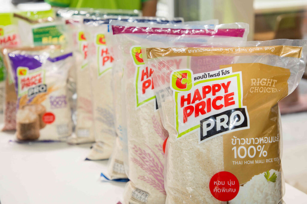 บิ๊กซี ซูเปอร์เซ็นเตอร์ สนับสนุนเกษตรกรไทยและชุมชนท้องถิ่น ให้เติบโตไปด้วยกันอย่างยั่งยืน ร่วมพัฒนาผลิตภัณฑ์ข้าวเพื่อจัดจำหน่ายส่งตรงถึงผู้บริโภค ภายใต้แบรนด์ “บิ๊กซี แฮปปี้ ไพรซ์ โปร” (Big C Happy Price Pro) กับสโลแกน “มือโปรมั่นใจ ราคาก็แฮปปี้” คัดสรรข้าวพันธุ์ที่ดีที่สุด ด้วยข้าวหอมมะลิแท้ 100% จากจังหวัด สุรินทร์, จังหวัดอุบลราชธานี จังหวัดศรีสะเกษ และจังหวัดร้อยเอ็ด ซึ่งเป็นแหล่งเพราะปลูกข้าวที่ดีที่สุดในประเทศไทย ที่ผ่านกระบวนการผลิตพิถีพิถันทุกขั้นตอน เพื่อให้ได้ข้าวที่สะอาดได้มาตรฐาน คัดเมล็ดยาวเรียงตัวสวย ผิวเรียบตลอดทั้งเมล็ด เมื่อนำไปหุงจะมีความเหนียวนุ่ม และมีกลิ่นหอมกรุ่น น่ารับประทาน โดยมีให้ท่านเลือกทานหลากหลายสายพันธุ์ตามความชอบ ได้แก่