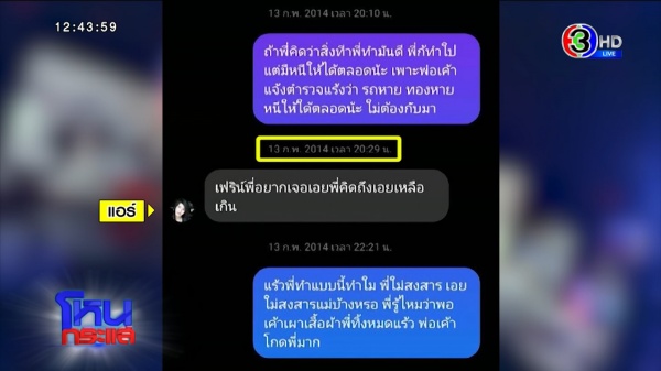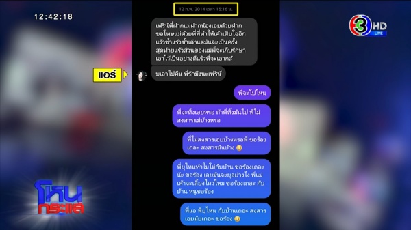 เฟิร์น : คิดว่าแอร์พิมพ์นั้นแหละค่ะ ปกติเขาก็พูดคุยลักษณะนี้ ไม่ได้แปลกอะไร ไม่ได้ติดใจสงสัยอะไร แต่มีระยะเวลาส่งข้อความ ปกติถ้าส่งไปจะตอบกลับมาเลย แต่นี่เว้นช่วง หนูส่งไปหลายชม.ถึงตอบกลับมา