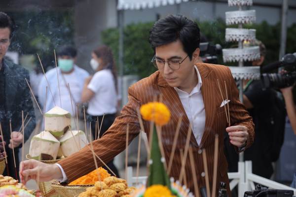 บรรยากาศในพิธีบวงสรวง เต็มไปด้วยนักแสดงและสื่อมวลชนที่มาร่วมพิธีกันอย่างเนืองแน่น ซึ่งงานได้จัดขึ้นโดยดำเนินการตามมาตรการควบคุมการระบาดของไวรัสโควิด-19 อย่างเคร่งครัด ทัพนักแสดงนำโดย พระเอกลูกรักเช้นจ์ “เอี๊ยง สิทธา” ที่จะมาสร้างตำนานบทใหม่สงครามรักสามเศร้า ของแก๊งเพื่อนรัก ร่วมด้วย “มะปราง อลิสา” นางเอกรุ่นใหม่ไฟแรง ที่ประเดิมรับงานนอกบ้านครั้งแรก ด้านพระเอกหนุ่มหล่อมากฝีมือ “พอร์ช ศรัณย์” กับละครยาวเต็มตัวครั้งแรก หลังจากที่ผันตัวมาเป็นนักแสดงฟรีแลนซ์ (ตรวจพบเชื้อ โควิด-19 ไม่สามารถมาร่วมพิธีบวงสรวงได้)