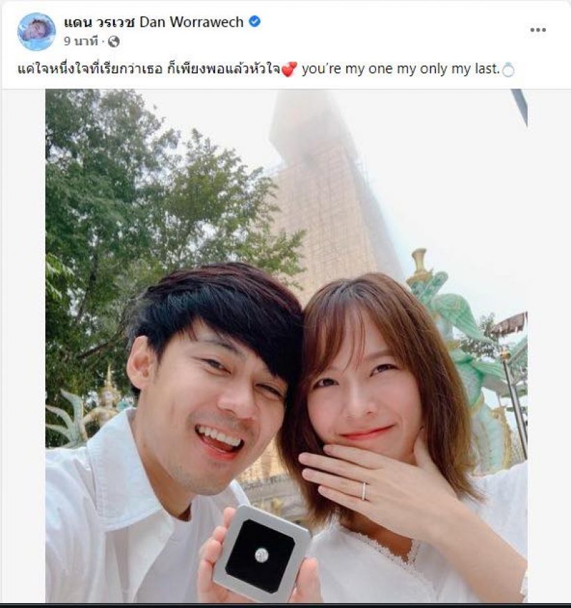 และแล้ววันนี้ก็มาถึงวันที่ใครหลาย ๆ คน รอคอย โดย “แดน” ขอ “แพทตี้” แต่งงานเป็นที่เรียบร้อย ซึ่ง แดน โพสต์ภาพสวมแหวน พร้อมแคปชั่นว่า “แค่ใจหนึ่งใจที่เรียกว่าเธอ ก็เพียงพอแล้วหัวใจ💞 you’re my one my only my last.💍” บอกเลยว่าน่ารักสุด ๆ กว่าจะถึงวันนี้ แฟน ๆ ลุ้นแทบตายอิอิ