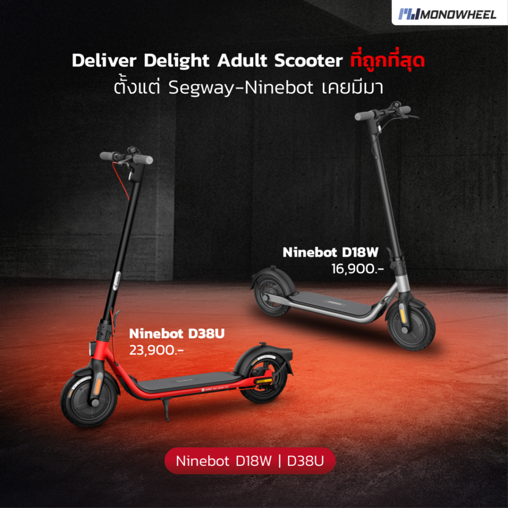 หากถามถึงสกู๊ตเตอร์ไฟฟ้ารุ่นเริ่มต้นสักคัน Ninebot KickScooter D Series จะต้องเป็นหนึ่งในคำตอบที่ดีให้กับทุกคนได้แน่นอน โดย Ninebot D18W ราคาอยู่ที่ 16,900 บาท และ Ninebot D38U ราคาอยู่ที่ 23,900 บาท หากสนใจ สามารถมาทดลองทั้ง 2 รุ่นและรวมถึงสินค้าอื่น ๆ ได้ที่ MONOWHEEL HQ ซอยจุฬา 28 ถนนบรรทัดทอง