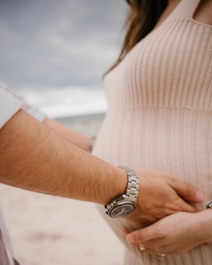 ล่าสุด คุณพ่อเจ็ท โพสต์ภาพครรภ์ใกล้คลอดพร้อมข้อความว่า “Soon 👶🏻 feels unbelievable 🤍 32 Weeks pregnant อีก 7 อาทิตย์ก็ได้เจอกันแล้วนะลูก ☺️ #pimpattypregnant cr.photo by @fferrarii 📸”