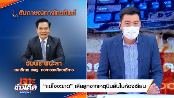 ผ่าคดีดังชั่วข้ามคืนกับการสูญเสียลูกชาย ในกรณีเหยื่อเพื่อนปืนลั่นวัย 14 ปีในห้องเรียนวิชาคอมพิวเตอร์ แม่ผู้เสียชีวิตเผยยังทำใจไม่ได้ ร้องขอความยุติธรรมให้ลูกเพราะยังติดใจเรื่องคดี หลังอ้างเหตุดราม่าคีย์บอร์ดระเบิด อยากให้มือปืนมาสารภาพความจริง ด้านกู้ภัยเล่าขณะถึงที่เกิดเหตุ น้องยังมีชีพจร ล่าสุด มาเคลียร์ใจกันชัด ๆ ผ่านรายการ “เจาะข่าวเด็ด สเปเชียล” (The Day News Update Special) ทางช่อง MONO29 โดยผู้ประกาศข่าว “บ๊อบ-ณัฐธีร์ โกศลพิศิษฐ์” ต่อสายตรงวิดีโอคอลสอบถามความคืบหน้ากับ นางปวีณา งามสุด แม่ของ น้องโชค ผู้เสียชีวิต พร้อมฟังวินาทีเจ้าหน้าที่กู้ภัยเล่าวินาทีถึงที่เกิดเหตุโดย คุณชัยรัตน์ คุณหิรัญ อาสาสมัครมูลนิธิร่วมกตัญญู และ ดร.อัมพร พินะสา เลขาธิการ สพฐ. กระทรวงศึกษาธิการ มาร่วมเปิดเผยแนวนโยบายในอนาคตว่าจะต้องปรับปรุงประเด็นใดบ้าง