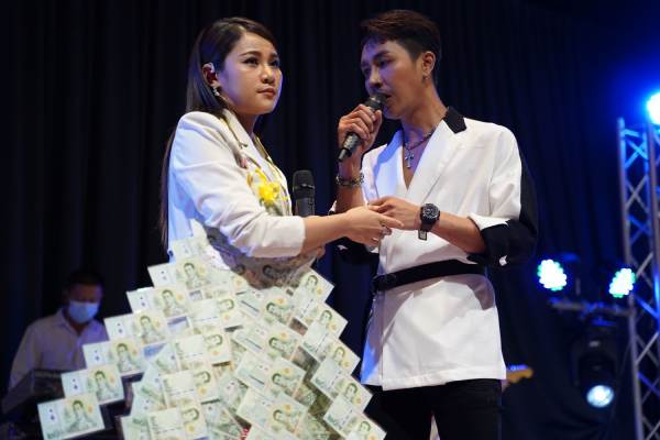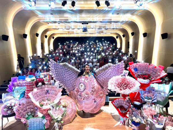 พร้อมมีศิลปินน้องรัก “เวียง นฤมล” ที่มาสร้างสีสันต์ภายในงาน แต่ที่ต้องตะลึงขนลุกคงหนีไม่พ้นมาลัยธนบัตรที่ต้องสรรค์สร้างดีไซน์ขึ้นมามอบให้ศิลปินอันเป็นที่รักจนล้นตัวหนุ่มตรีซึ่งรวม ๆ แล้วมีมูลค่ากว่าล้านบาท