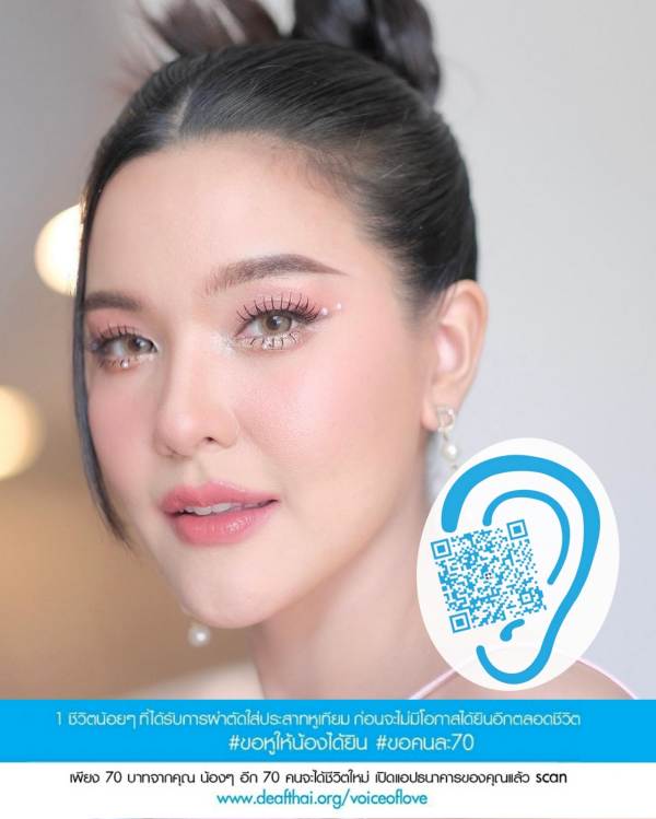 “ยังมีเด็กหูหนวกอีกมากค่ะที่กำลังรอการผ่าตัด ช่วยกันบริจาคเพียงคนละ 70 บาท เพื่อให้น้องๆ สามารถได้ยินเสียง ถือว่าเป็นการทำบุญครั้งใหญ่ที่เราได้มอบความสุขให้กับเด็กๆ ไปทั้งชีวิต ร่วมกันเปลี่ยนชีวิตเด็กหูหนวกตั้งแต่แรกเกิดให้มีโอกาสได้ยินเสียง ไม่ต้องอยู่ในโลกที่เงียบไปตลอดชีวิตค่ะ”