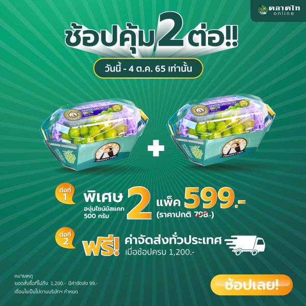 Talaadthai Online (ตลาดไทออนไลน์) แอปพลิเคชันช้อปผลไม้และผักสด การันตีความ สดกว่า ครบกว่า คุ้มกว่า จากร้านค้าที่ส่งตรงจาก ตลาดไท ตลาดค้าส่งของสดที่ใหญ่ที่สุดในประเทศไทย ต้อนรับเทศกาลกินเจ ส่งแคมเปญ “ดีลดี ของเด็ด! ต้อนรับกินเจ” จัดโปรโมชั่นสุดปังเอาใจคุณลูกค้า ด้วยโปรสุดคุ้ม 2 ต่อแบบจุกๆ ต่อที่ 1 เอาใจฟรุ๊ตเลิฟเวอร์ด้วย องุ่นไชน์มัสแคท ลูกกลมโตรสหวานฉ่ำ ซื้อ 2 แพ็ค ในราคาเพียง 599 บาท จากราคาปกติ 798 บาท คุ้มต่อที่ 2 เมื่อช้อปสินค้าครบ 1,200 บาท ฟรี! ค่าจัดส่งทั่วประเทศทันที แต่ถ้ายอดสั่งซื้อไม่ถึงตามกำหนด คิดค่าจัดส่งสุดคุ้มในราคาเดียวทั่วไทยเพียง 99 บาท พบกับโปรสุดพิเศษแบบนี้ได้ตั้งแต่ วันนี้ จนถึง วันที่ 4 ตุลาคม 2565 นี้เท่านั้น