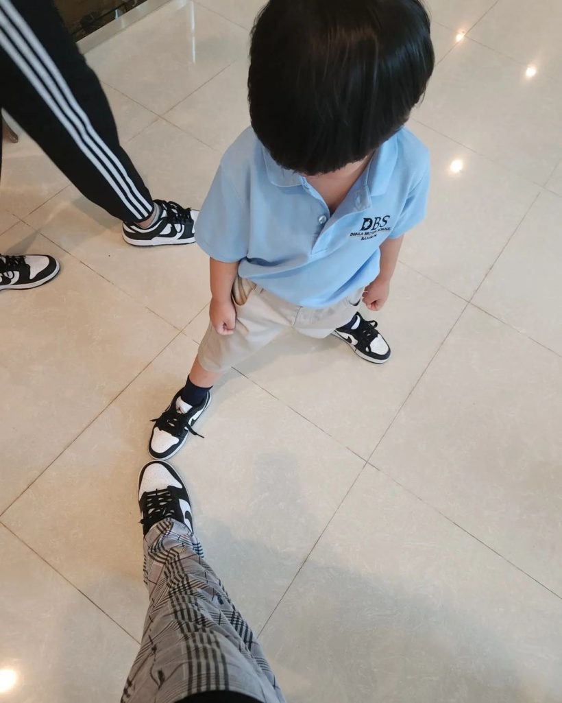 ล่าสุด ดีเจเพชรจ้า ได้โพสต์ภาพโมเมนต์ครอบครัวสุดน่ารัก โชว์รองเท้าที่ใส่ 3 คนพ่อเเม่ลูก พร้อมเเคปชั่นสั้น ๆ ว่า “panda”