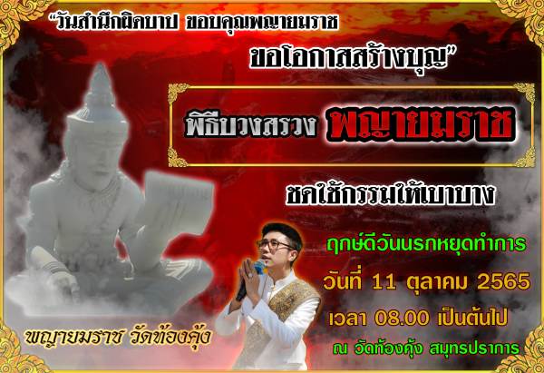 ครั้งแรกของโลก ร่วมพิธีสำนึกผิดบาป บวงสรวงพญายมราช เพื่อปลดล็อกชีวิต ฤกษ์ดีวันนรกหยุดทำการ 11 ต.ค. 65 เปิดทางให้ดวงวิญญาณมารับบุญ ใครได้ทำบุญในวันนี้นับเป็นมหากุศล