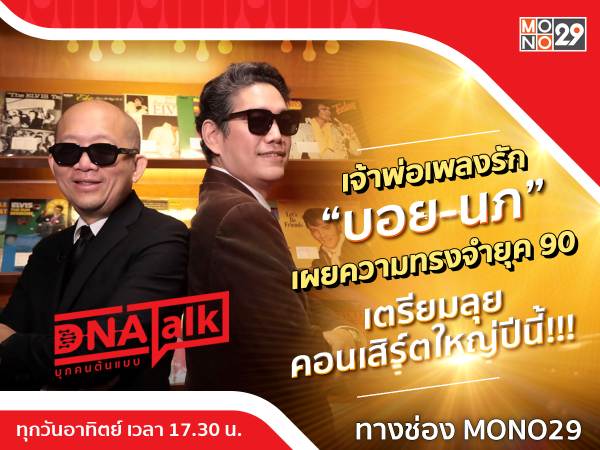 ไม่ควรพลาด สำหรับใครที่โตมากับเพลงรักพลังบวกของ บอย-นภ สามารถรับชมเรื่องราวทั้งหมดได้ ในรายการ “DNA TALK บุกคนต้นแบบ” วันอาทิตย์ที่ 2 ตุลาคมนี้ เวลา 17.30 น. ทางช่อง MONO29