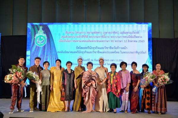 สหพันธ์สมาคมสตรีนักธุรกิจและวิชาชีพแห่งประเทศไทย ในพระบรมราชินูปถัมภ์ และสมาคมสตรีนักธุรกิจและวิชาชีพแห่งประเทศไทย ร่วมกันอนุรักษ์ รักษา ส่งเสริมและพัฒนาผ้าไทย สิ่งทอ จากภูมิปัญญาท้องถิ่น มาเป็นอาภรณ์ที่ทรงคุณค่า จัดโครงการ ‘สืบสาน สยามพัสตรา ภูษาสง่าศิลป์’ เฉลิมพระเกียรติ สมเด็จพระนางเจ้าสิริกิติ์ พระบรมราชินีนาถ พระบรมราชชนนีพันปีหลวงเนื่องในโอกาสมหามงคลเฉลิมพระชนมพรรษา 90 พรรษา 12 สิงหาคม 2565