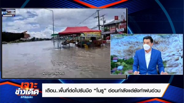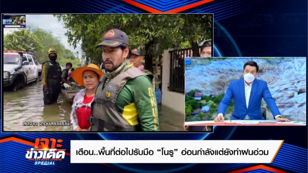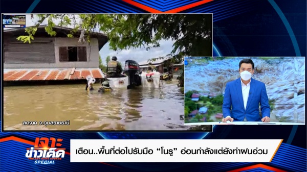เฝ้าระวังจับตาพายุไต้ฝุ่น โนรู หลังเข้าถล่มเมืองดานัง ประเทศเวียดนาม ล่าสุดลดกำลังลงปกคลุมภายในประเทศไทย เหลือเพียงหย่อมความกดอากาศต่ำกำลังแรง เกิดผลกระทบลมไม่มาก แต่น้ำมาแรง และฝนตกหนักต่อเนื่อง สร้างภาวะน้ำท่วมหลายระดับในหลายพื้นที่ เจาะประเด็นฝนฟ้าอากาศผ่านผู้ประกาศข่าว “บ๊อบ-ณัฐธีร์ โกศลพิศิษฐ์” ในรายการ “เจาะข่าวเด็ด สเปเชียล” (The Day News Update Special) ทางช่อง MONO29 หลังติดตามสถานการณ์สดกับ คุณพงศกร รอดภัย ผู้สื่อข่าวจังหวัดอุบลราชธานี ได้ลงพื้นที่ไปกับ คุณบิณฑ์ บันลือฤทธิ์ นำถูกยังชีพ และสิ่งของจำเป็นไปแจกจ่ายให้กับชาวบ้าน รวมถึง คุณศักดิ์สิทธิ์ สุภิษะ ผู้สื่อข่าวประจำจังหวัดสุรินทร์ ที่รายงานสถานการณ์น้ำในพื้นที่แบบสด ๆ และ คุณชวลิต จันทรรัตน์ ประธานเจ้าหน้าที่บริหารทีมกรุ๊ป นายกสมาคมวิศวกรที่ปรึกษาแห่งประเทศไทย เข้ามาร่วมวิเคราะห์คาดการณ์ทิศทางพายุและการรับมือภายในรายการ