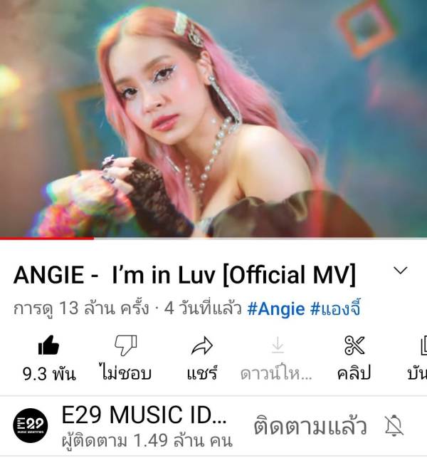เปิดตัวค่ายเพลง “E29 MUSIC IDENTITIES” (อีทูไนน์ มิวสิค ไอเดนติตี้) ไปไม่ทันไร เพลง “I’m in Luv” (แอม อิน เลิฟ) ของสาวน้อย แองจี้-ฐิติชา สมบัติพิบูลย์ ก็ปังเกินต้านทะลุ 13 ล้าน Views ไปแล้ว งานนี้ทำเอาเจ้าตัวปลื้มปริ่มที่เหล่าแฟนคลับ ทั้งชาวไทยและชาวต่างชาติให้การต้อนรับอย่างล้นหลาม