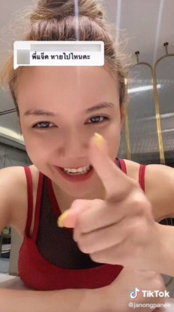 จนล่าสุดมีชาวเน็ตถาม สาวจ๊ะ ใน Tiktok ว่า “พี่แจ็คหายไปไหนคะ” ด้านสาว “จ๊ะ” ก็ได้อัดคลิปตอบกลับไปว่า “ไม่ได้อยากรู้หรอกว่าพี่แจ็คอยู่ไหน อยากรู้ว่ายังดีกันอยู่ไหม หรือยังไง เล่าสิ้ ใช่ไหม อือ เอางี้ก่อนถ้าอยากรู้พี่แจ็คอยู่ไหนเขามีติ๊กต่อกนะคะ ติ๊กต่อกเขาคือ แจ็ค ธนพล นะคะลองเสิร์ชดูนะ และก็อีกอันทางเฟซบุ๊กก็ได้ 2 เฟซนะคะ เป็นภาษาไทย พิมพ์ว่า “แจ็ค ธนพล” เฟซที่หนึ่ง เฟซที่สองนะคะ “ธนพล สัมมาพรต” อ้า ลองไปดูว่าเขาอยู่ไหน โอเคนะ เบาได้เบานะ เราเนี่ย ไม่ว่างเลยนะเราเนี่ย อยากรู้จัดเลยเราเนี่ย (หัวเราะ)”