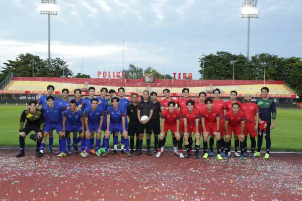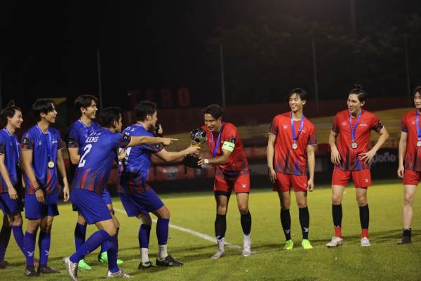 ส่วนทีมสีแดงมาแรงตั้งแต่เริ่มต้นและเป็นฝ่ายรุกเตะนำไปก่อนถึง 4 ประตู โดยฝีเท้าของ “กิก ดนัย” “เต้ย พงศกร” “เกรท วรินทร” และ“มีน พีรวิชญ์” ทำให้ทั้งคู่เสมอกันจนต้องดวลจุดโทษถึง 5 ลูก วัดใจกองเชียร์ทั้งในสนามและแบบ Live Stream ทางเว็บไซต์และแอปพลิเคชัน 3Plus